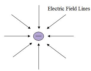 圖1.負電荷具有與之相關的電場,無處不在的空間。